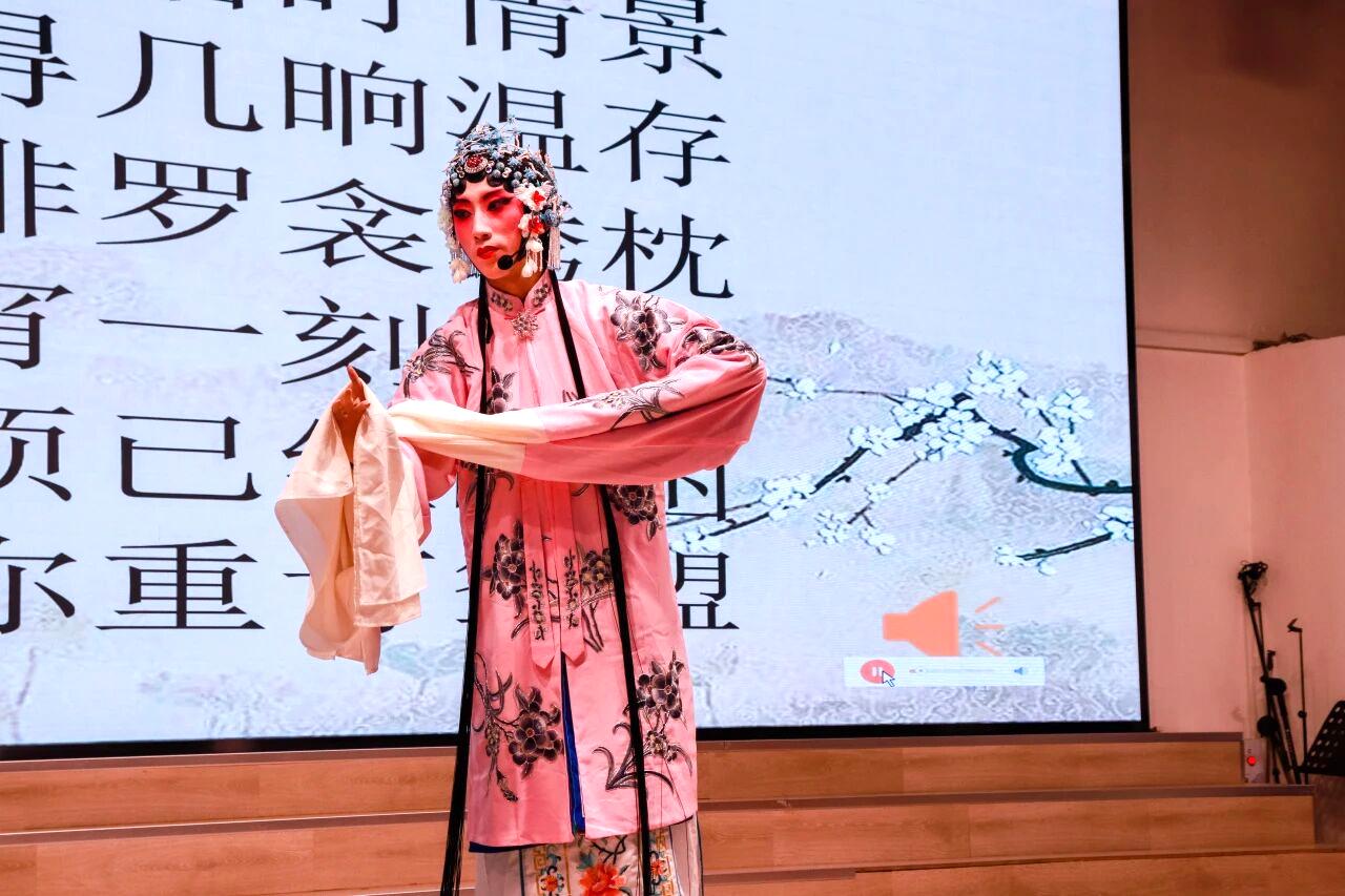 经典演绎,共情传统。演出中,苏州幔亭曲社成员朱子谦带来的《牧羊记•望乡》,江苏大学兰韵戏曲社前社长杨桦菁与镇江康盛京剧社胡昱杰合作表演的《大保国》以及《太真外传》和《二进宫》选段等曲目,以精湛演绎给师生留下难忘印象。