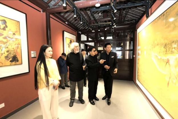 开馆仪式上,曹俊向艺术馆无偿捐赠了近期创作的多幅精品画作,其中既有融入姜堰水乡元素的山水佳作,也有兼具东方意蕴与西方美学的花鸟珍品,为艺术馆的馆藏增添了珍贵财富。在现场观众的热烈掌声:章剑华与泰州市委常委、秘书长叶冬华共同为“曹俊艺术馆”揭牌;姜堰区委书记、区人大常委会主任孙靓靓与曹俊携手为 “中央美院特聘教授工作站” 揭牌;李虹霖与曹俊为“国家画院导师工作站”揭牌;张纪中与曹俊则共同为“中国传媒大学博士工作站”揭牌。标志着曹俊艺术馆正式成为集艺术展示、学术研究、人才培养功能于一体的综合性文化平台。