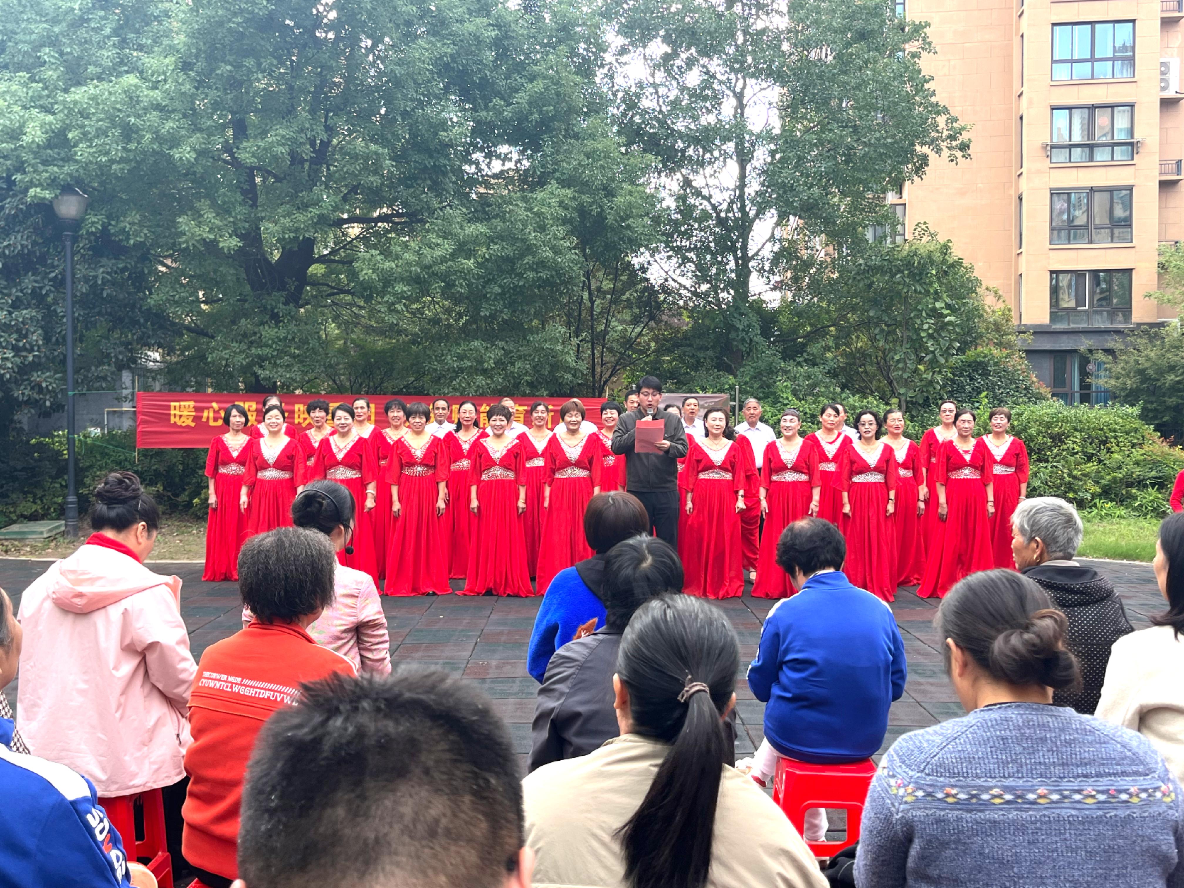 活动在《我和我的祖国》歌声中拉开序幕,台上台下激昂深情的合唱瞬间点燃全场热情。女声独唱《我们的中国梦》与男声独唱《我们的祖国歌甜花香》以动人旋律表达对祖国的祝福;空竹表演翻飞起舞,展现传统技艺的魅力;方言三句半《赞美社区》用亲切乡音诉说家园美好,引来满堂喝彩;葫芦丝合奏《红歌联奏》唤起人们的时代记忆。整场演出高潮迭起,洋溢着节日的喜庆与感动。