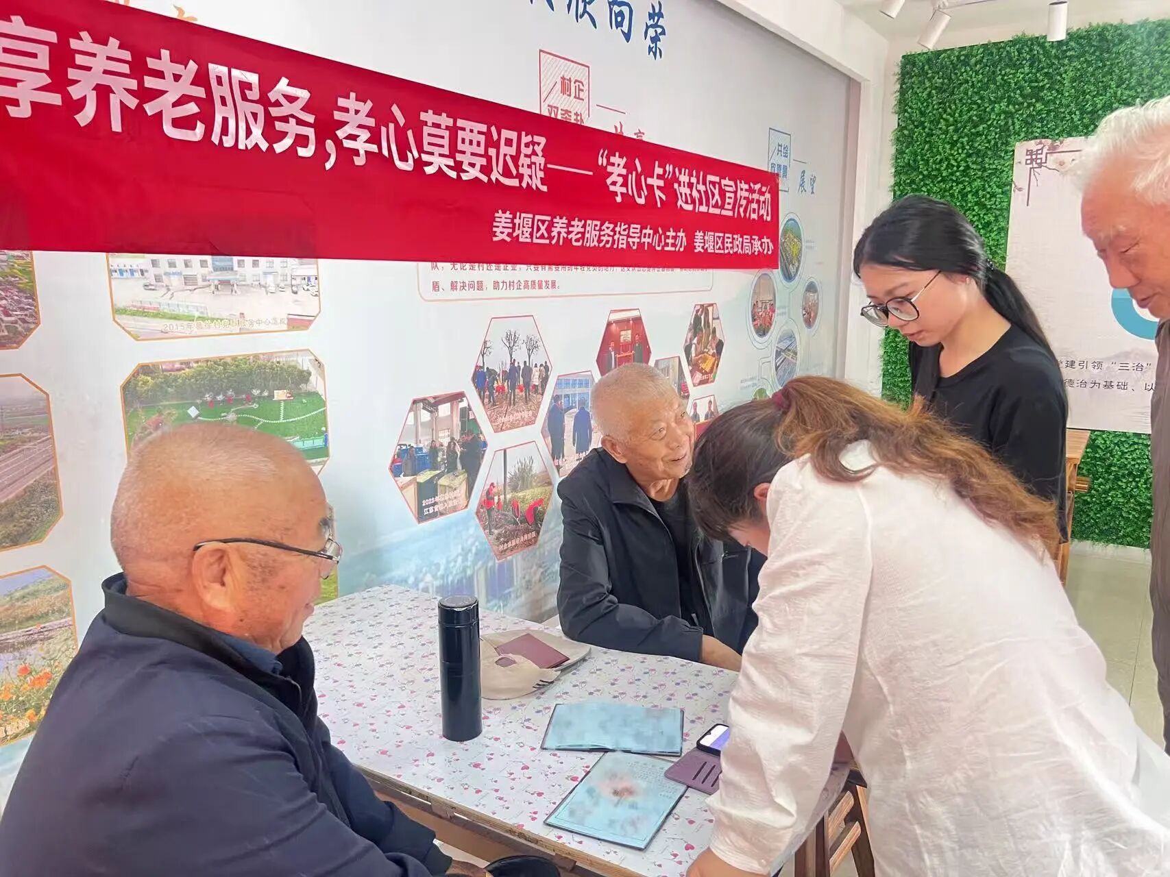 近日,姜堰区养老服务指导中心带着“孝心卡”来到张甸镇葛徐村,开展助餐优惠政策宣传活动。
