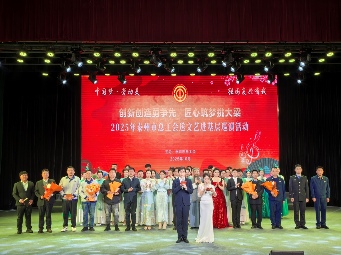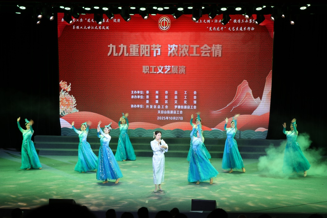 10月27日下午,“创新创造勇争先 匠心筑梦挑大梁”2025年泰州市总工会送文艺进基层巡演暨“九九重阳节 浓浓工会情”姜堰职工文艺展演在姜堰文化馆三水剧场举行。98家基层工会退休老职工、一线职工代表欢聚一堂,在歌舞中品味重阳温情,在传承中赓续匠心。
