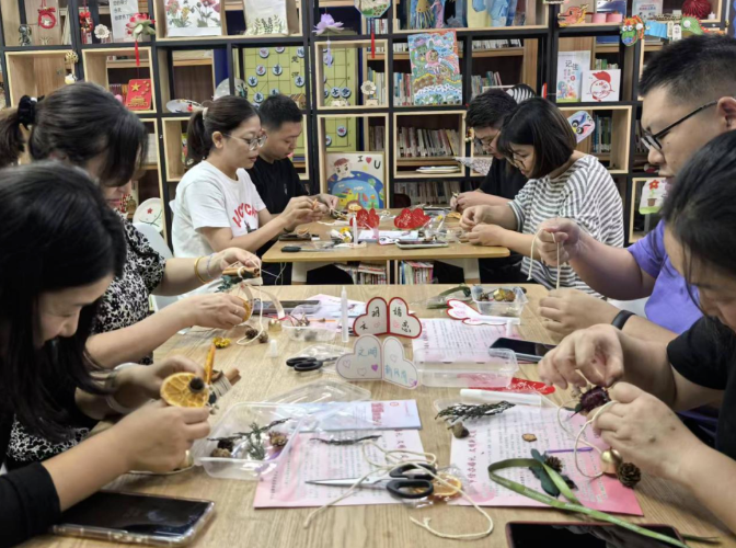 创意 DIY 升温,“橙” 意传递心意。工作人员提前准备好新鲜橙子、丝带、挂绳、装饰配件等材料,青年朋友们自由搭档,分工协作。有人专注地给橙子钻孔,有人精心挑选装饰搭配色彩,有人在丝带写上专属祝福……原本普通的橙子,在大家的巧手妙思下,变成了一个个承载心意的“橙”意信物。制作过程中,青年们分享创意、互帮互助,欢声笑语不断,不少人在协作中加深了了解,默契悄然滋生。