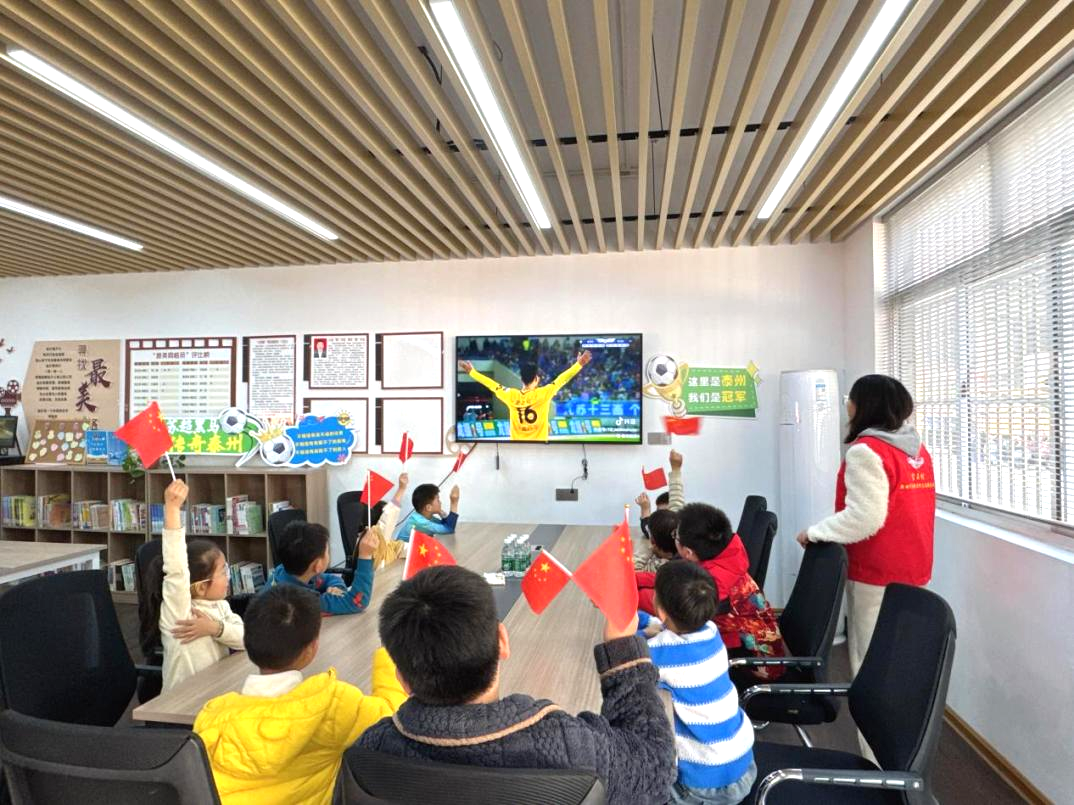 少年意气追光行,精神铸魂育新苗。宫王村新时代文明实践站以“冠军风采映童心 ‘三个不相信’铸乡魂”为核心,为青少年健康成长强基铸魂。活动现场,泰州队3分钟夺冠集锦引爆全场,孩子们挥舞旗帜模仿射门动作,沉浸式感受冠军荣光;在广场上的趣味足球互动中,青少年们带球避障、默契协作,在欢乐中体会团队力量;村党总支书记结合泰州队逆袭之路,深刻解读“三个不相信”城市精神,引导孩子们以冠军为榜样,当一名勇于拼搏、奋发向上的新时代好少年。