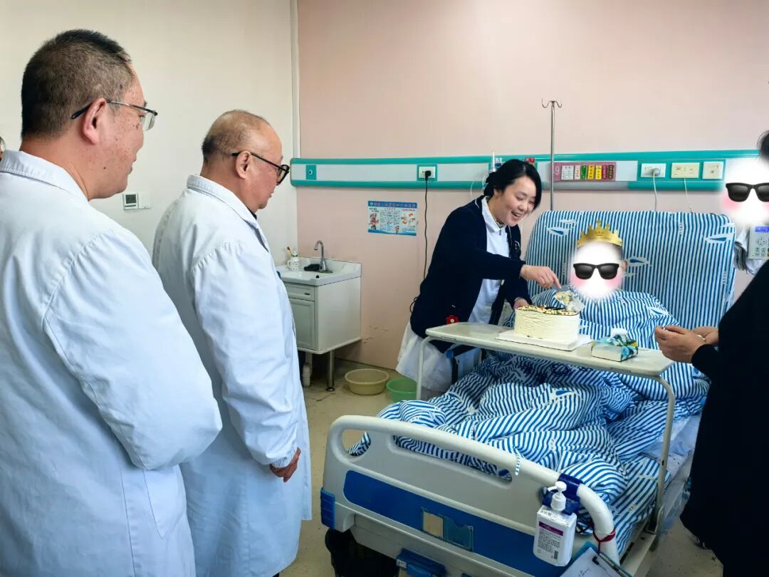 “丁先生,祝您生日快乐!”伴随着熟悉的生日旋律,医护人员齐声送上祝福,护士长为他戴上生日帽。许煦副主任医师握着丁先生的手说道:“这一个多月来,您的坚强与配合让我们深受感动。我们医护团队和您的家人,一定会陪着您共渡难关!”