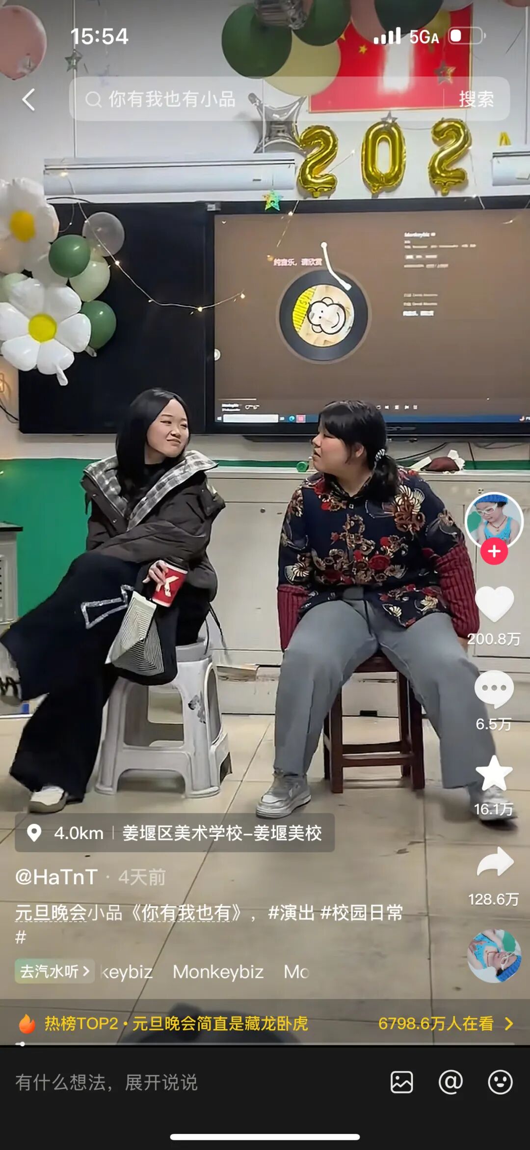 刚刚过去的元旦假期,姜堰美校在抖音上火了!姜堰区美术学校元旦晚会上的《你有我也有》小品短视频上传后4天多,收获点赞超200万,转发量破129万。