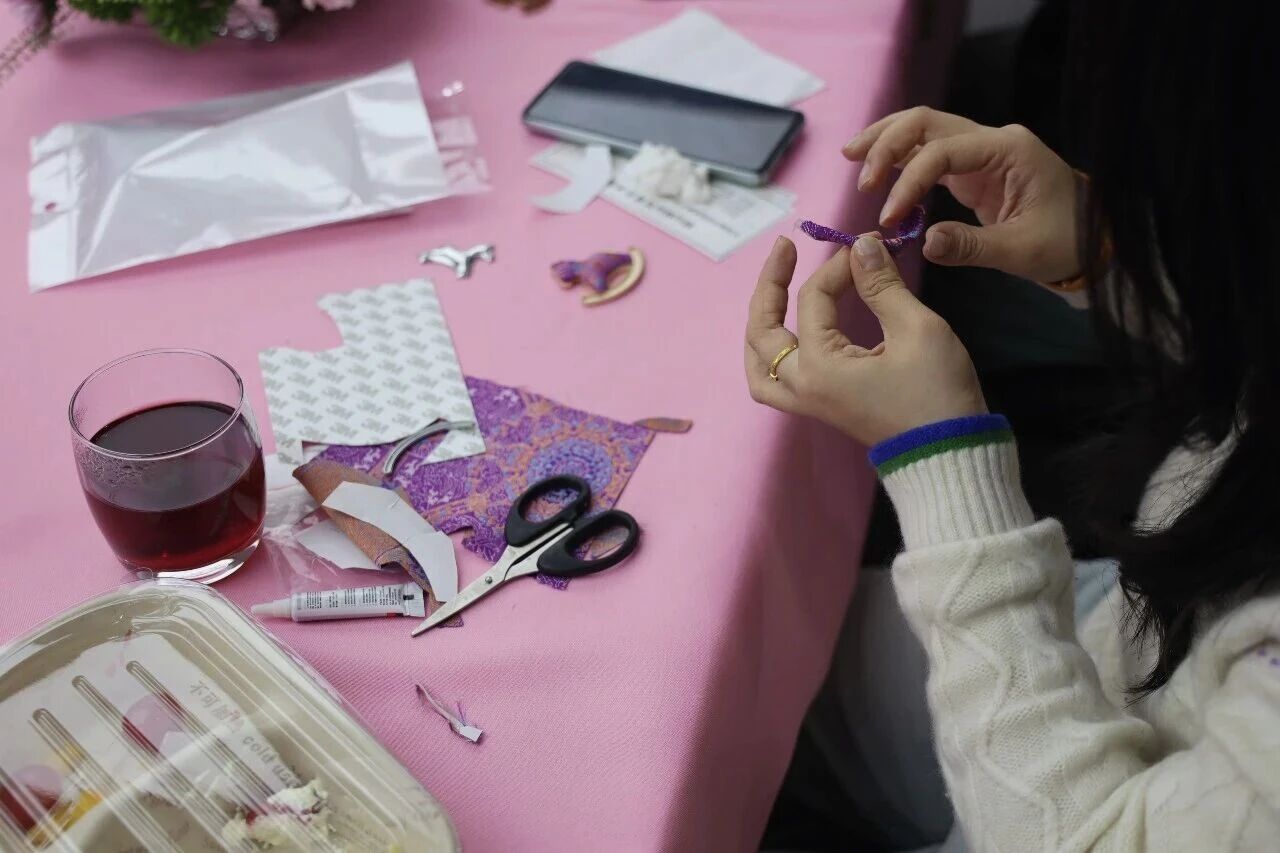 巧手生花,悦品手作雅趣。分享环节后,活动进入温馨有趣的手工DIY阶段。女职工们尽情发挥创意,精心制作属于自己的手工作品。大家相互交流技巧,分享创作灵感,在轻柔的音乐中放松身心,现场氛围融洽,笑语盈盈。一件件独具巧思的作品逐渐呈现,不仅承载着对美好生活的期许,也展现了女性的灵动与巧思。