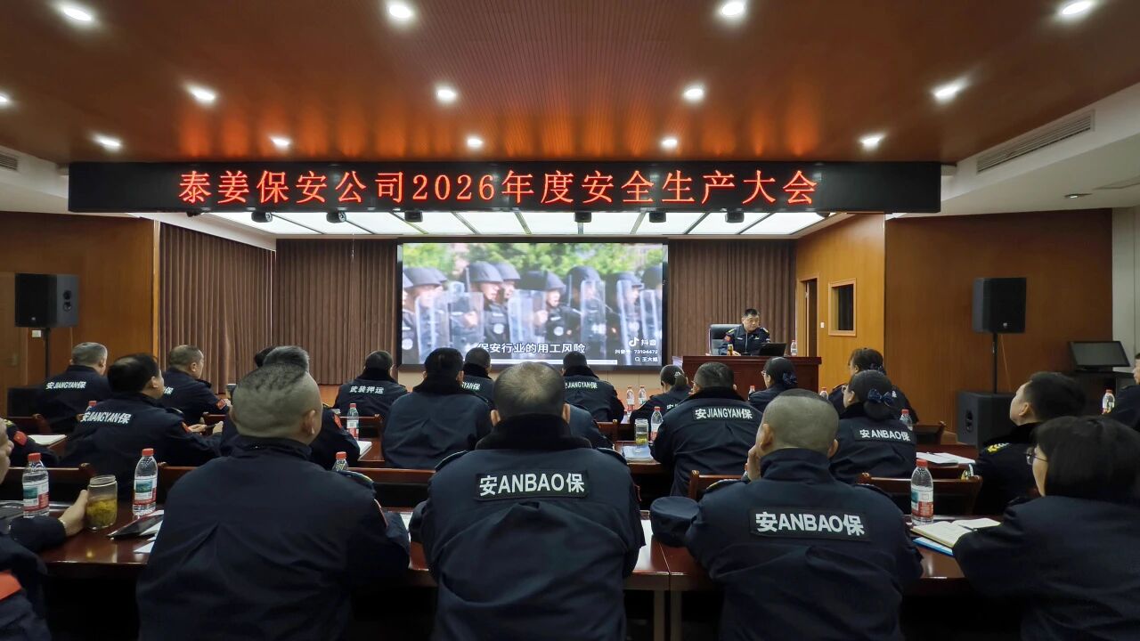 3月14日,泰姜保安公司召开2026年度安全生产大会,切实压实安全生产责任,强化全员安全意识,筑牢公司安全生产坚固屏障。公司副总经理余晶为各级管理人员、全体武装守押队员及行管人员授课,紧扣保安行业安全生产核心要点,以案为鉴、以法为纲,为全年安全生产工作划重点、明要求、定底线。