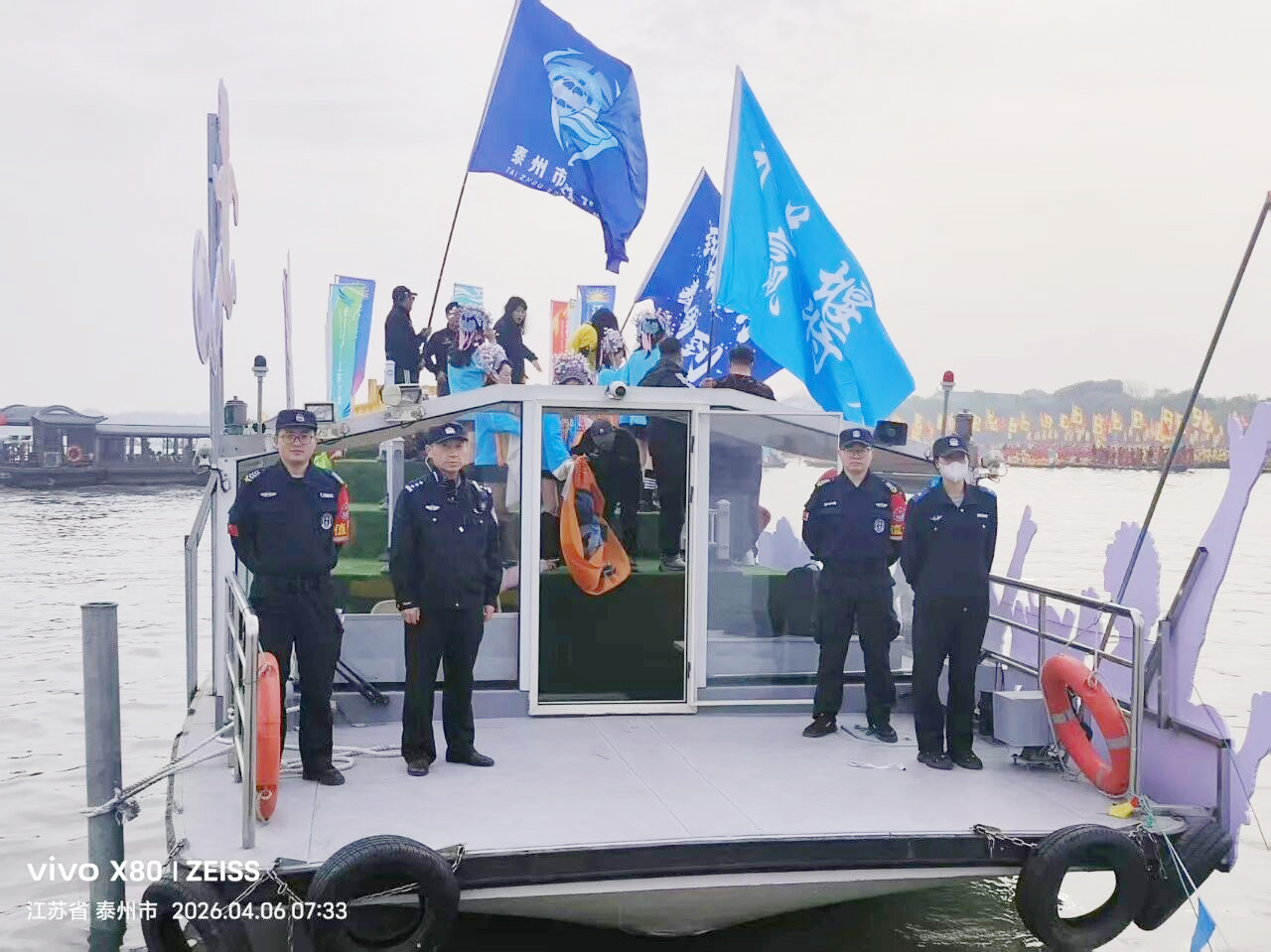 4月6日,2026泰州姜堰溱潼会船节盛大启幕。数百条各式船只和上万名会船选手在十里溱湖飞篙走桨,演绎历久弥新的民俗画卷。为圆满保障会船节安全工作,泰姜保安公司在公安机关统一领导和周密部署下,出动330名安保力量,全方位筑牢会船节安保防线。