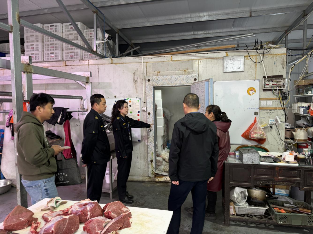 检查过程中,执法人员聚焦承诺达标合格证查验、购进售出记录落实两大核心内容,对市场内水产、肉类大户进行重点督导,严格核查其进货来源、供货方资质、承诺达标合格证等凭证,核对购进、销售台账记录,要求大户完整规范登记产品的购进信息与销售流向,做到来源可溯、去向可查、责任可究。同时督促大户严格落实主体责任,严把进货质量关,切实保障自身产品来源安全,也为下游散户经营户提供可追溯的正规货源,打通农产品全链条溯源堵点,健全全程监管链条。