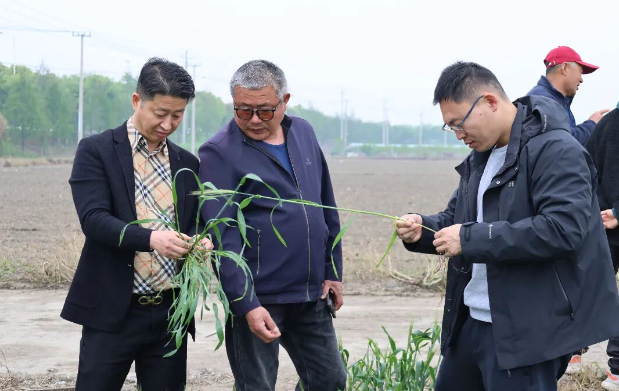 在淤溪小麦高产示范田,劳模服务队细致查看小麦生长态势、田间沟系配套及土壤墒情,聚焦防倒伏、防病害等春耕关键管护环节,现场示范讲解科学防控、精准施肥、壮秆培育等实用农技,面对面为农场主答疑解惑,针对性解决小麦种植生产中的实际问题。