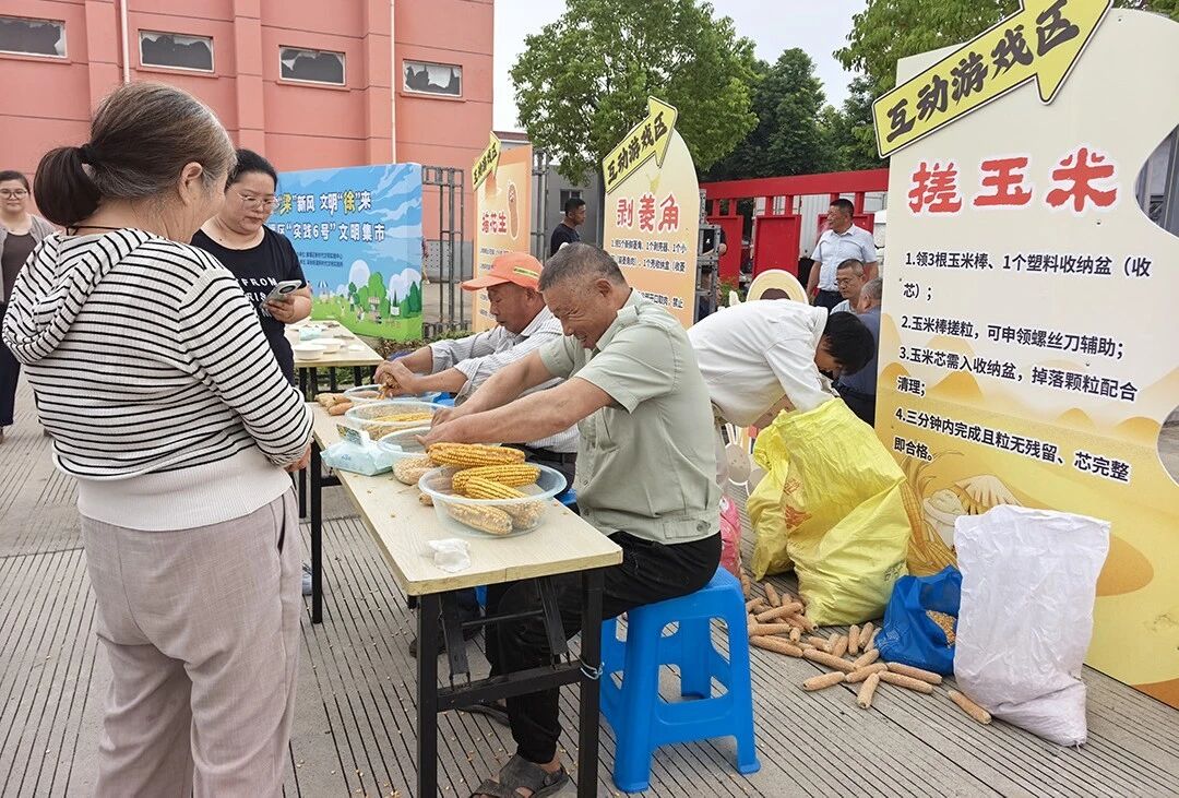 在农耕体验游戏区,“搓玉米”“摘花生”“剥菱角”等互动游戏,吸引干群同台竞技,在劳作中唤醒乡土记忆,拉近彼此距离。